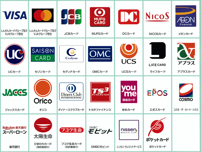 ※マークが同じ場合でも、一部ご利用いただけないカードがありますので、詳しくは各カード会社にお問い合わせください。